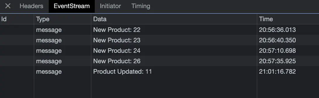 لكن يمكن استخدام SSE (Server Sent Events) لإرسال البيانات من السيرفر للـ Client، لا يزال الـ Client بحاجة إلى إرسال Request أولا، لكن يتم استخدام Keep-Alive لإبقاء الاتصال مفتوحا، والسيرفر سيرسل البيانات دون انهاء الـ Response، في الصورة السابقة تجد أنه قد تم إرسال أكثر من رسالة من السيرفر إلى الـ Client في أوقات مختلفة، كلها تعتبر Response واحدة لكن تم تقسيما وإرسالها بالتدريج،
